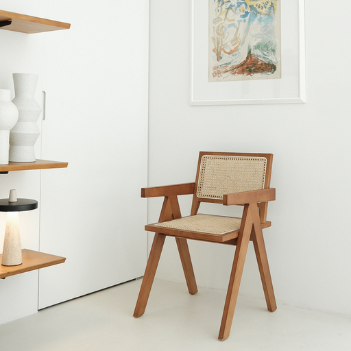 Lassen Sie eine frische Brise durch Ihr Esszimmer wehen unser Ruben Stuhl ! Dieser Esszimmerstuhl aus Rattan ist von Pierre Jeanneret inspiriert un...