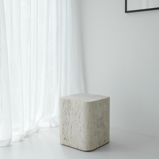 Quadratischer Couchtisch Travertin - Alba - 40 cm - Runde Kante