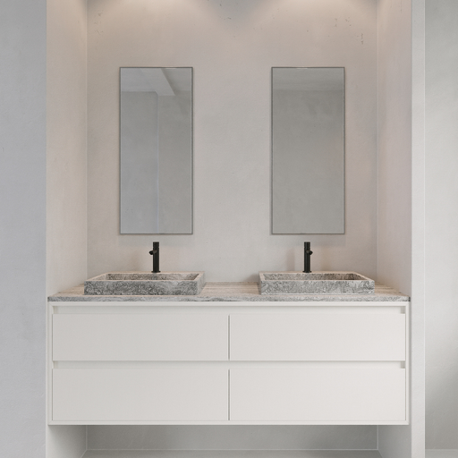This beautiful wooden bathroom cabinet Fien in white, 150 cm, is a real eye-catcher. Buy this white bathroom cabinet in combination with our Souman...