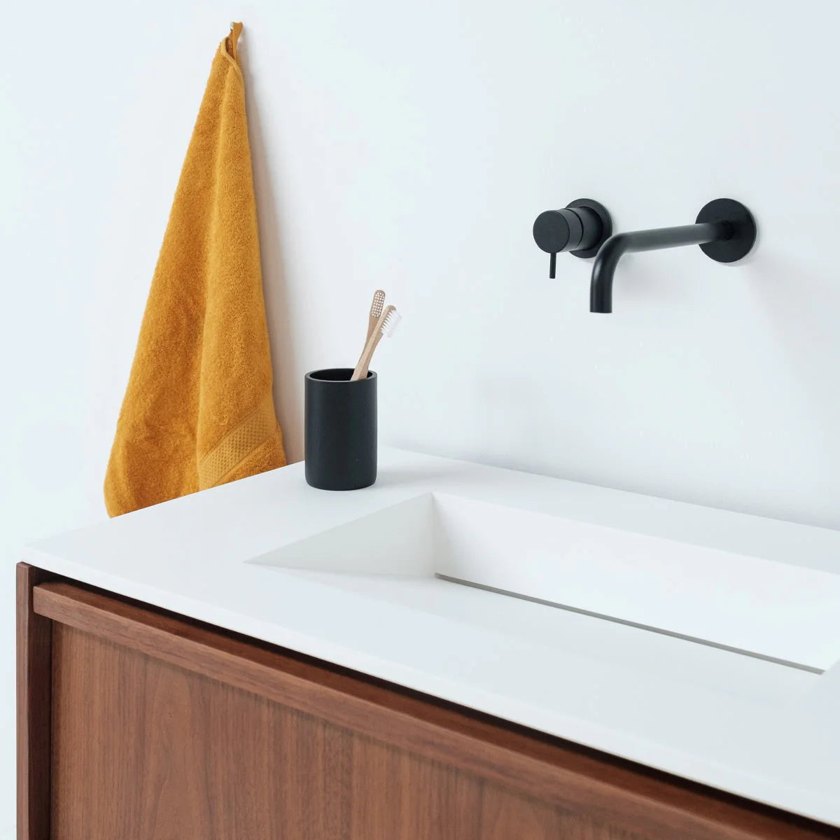 La superficie sólida es muy versátil. Se puede personalizar en diferentes colores y acabados, lo que la hace perfecta para el estilo de tu baño.