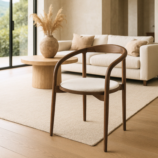 La Chaise de salle à manger Ely avec son assise ronde en tissu et son cadre en bois fumé de luxe dégage élégance et raffinement. Cette chaise combi...