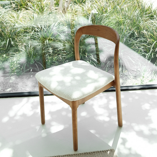 Chaise de salle à manger Chale - H76,5 cm - Noyer clair - Tissage bouclé ivoire
