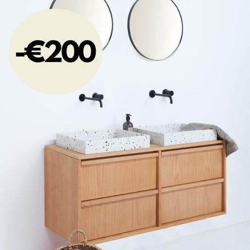 Scandinavisch eiken badkamerkast Fien - Alexis I waskommen - Wit Terrazzo bovenplaat - 150 cm
