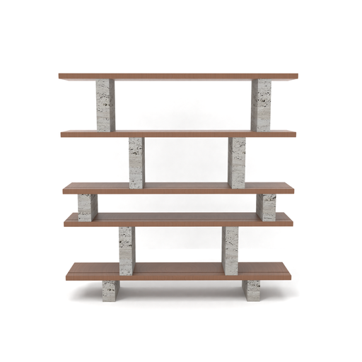 Wandkast - Merpins - Walnoot - Travertin pilaren - 180 cm (Walnoot / Wit travertijn)