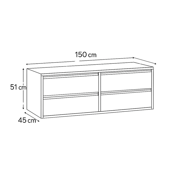 Dank ihrer 4 großen Schubladen bietet sie zudem praktischen Stauraum für all deine Toilettenartikel oder Handtücher. Dieses schwebende Walnuss-Badezimmermöbel wirkt zudem geräumig.