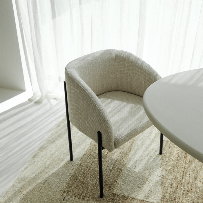 Werten Sie Ihr Esszimmer mit unseren Esszimmerstühlen aus Royan-Stoff auf und verleihen Sie ihm einen Hauch von Luxus. Mit ihrem schlichten Design strahlen diese beigen Stühle ein Gefühl von Eleganz aus. Die bequeme Sitzfläche in Beige sorgt für ein angenehmes Sitzgefühl, während die schwarzen Beine einen coolen Akzent setzen. Dank dieser vielseitigen Kombination passen diese Stühle perfekt in jedes Interieur.