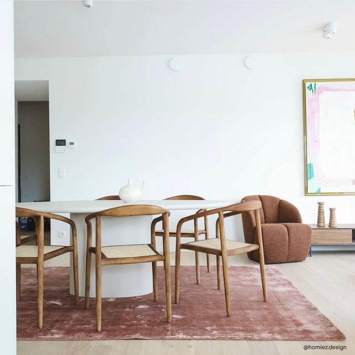 Organische Esstische stehlen der Welt der Innenarchitektur die Show und Sie können einer der Ersten sein, die diesen Trend setzen. Von Wabi-Sabi über Japandi bis hin zu einer Kombination mit Vintage finden die organischen Formen in jedem Interieur einen Platz. Dank der Mortex-Patina-Optik wirkt der Tisch stabil, robust und elegant zugleich. Der Schirm verleiht Ihrem Interieur eine frische Note und passt sich mühelos Ihrem Sessel oder Sofa an.