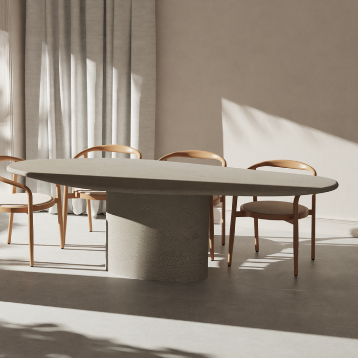 Der Strasbourg Esstisch ist eine wunderbare Mischung aus organischen Formen und moderner Eleganz. Mit ihrer großzügigen Länge von 250 cm bietet dieser Tisch ausreichend Platz, um bequem mit Familie und Freunden gemütliche Mahlzeiten und besondere Momente zu genießen.